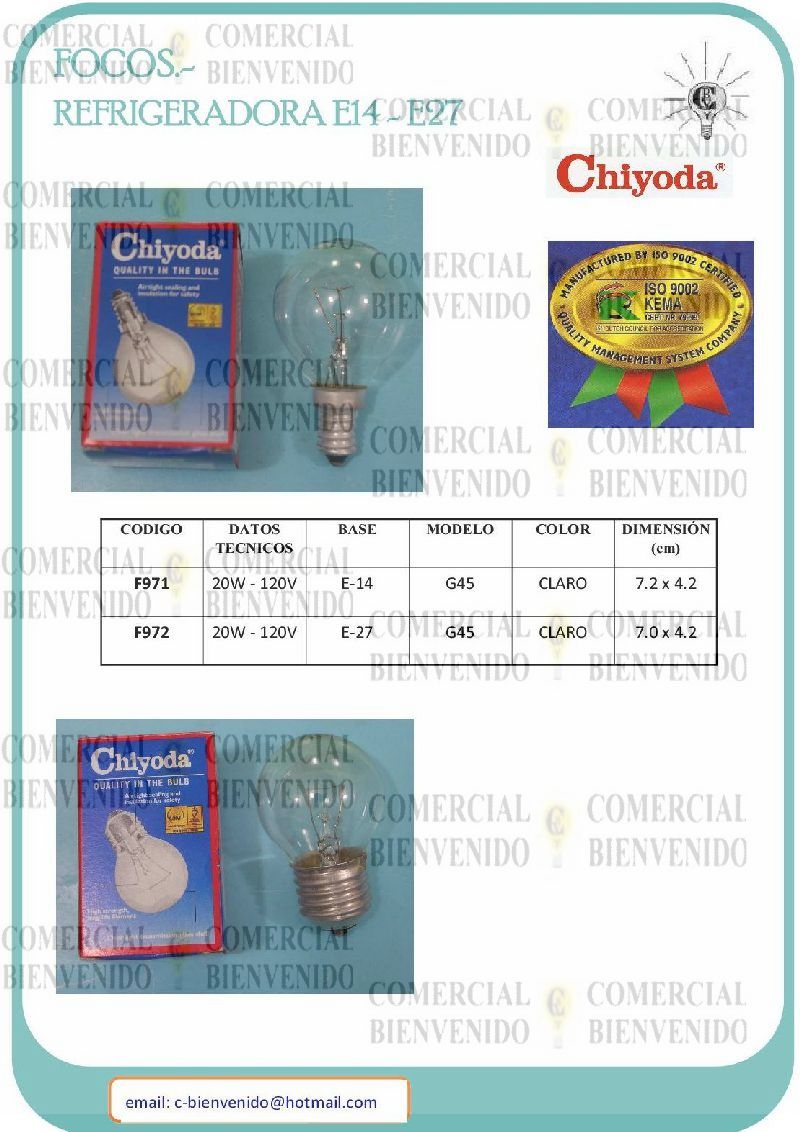 foco ahorradores chiyoda, base E27, diferentes modelos, 110v, de 10W a 26W.
